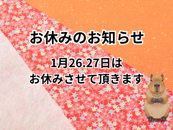 1月の26日.27日は振替連休とさせて頂きます。